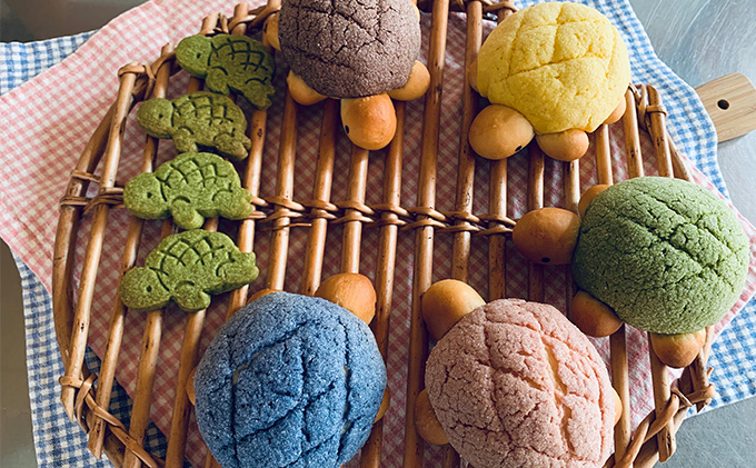 *綾瀬市産の新鮮卵と野菜パウダー使用して焼いた、全て天然色のカラフルなカメロンパンです。