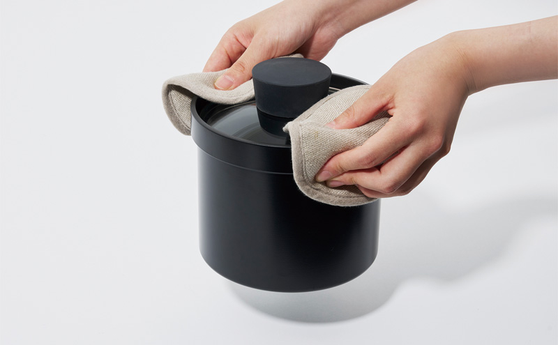カーボンは蓄熱性が高く、余熱でごはんの水分が奪われやすいため、すぐに食べきるかおひつ等他の容器に移してください。