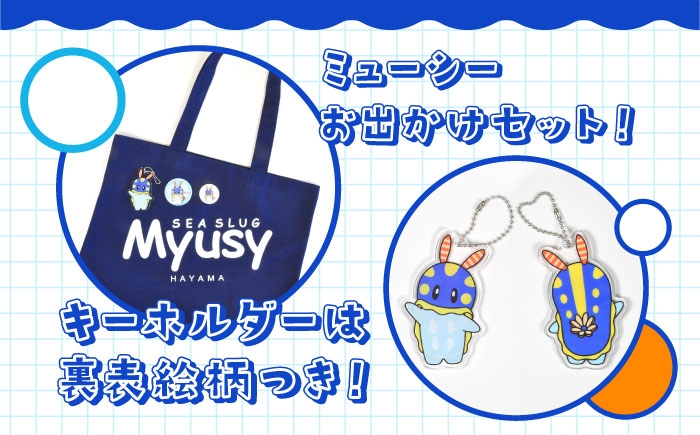 葉山の海から、ミューシーがお届け! ミューシーお出かけセット(トートバッグ、缶バッジ大小、キーホルダー)【Myusy project】 [ASCJ002]