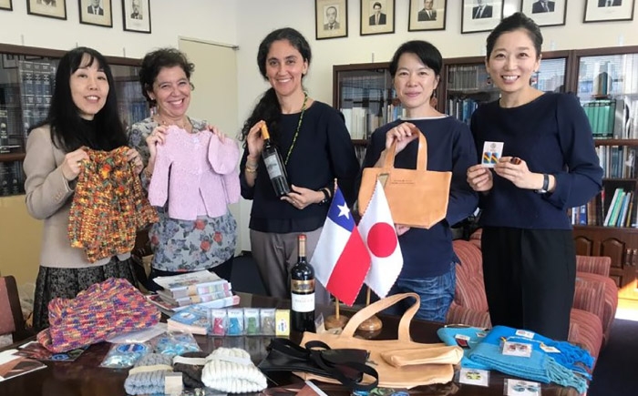 葉山の母親たちがデザインの提供と仕上げを、チリ・クラニラウエ市の女性たちが製品作りを担当。