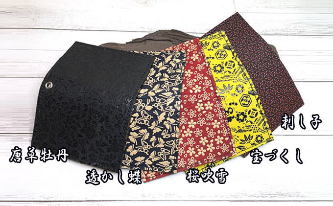 | 容量 | 寸法・・・縦10.7cm、横14.5cm、厚み1cm、重さ役38g 鹿革・牛革 種類:唐草牡丹、透かし蝶、桜吹雪、宝づくし、刺し子 |