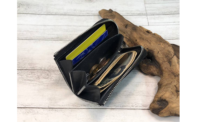 漉き模様革のL字ファスナーショート財布