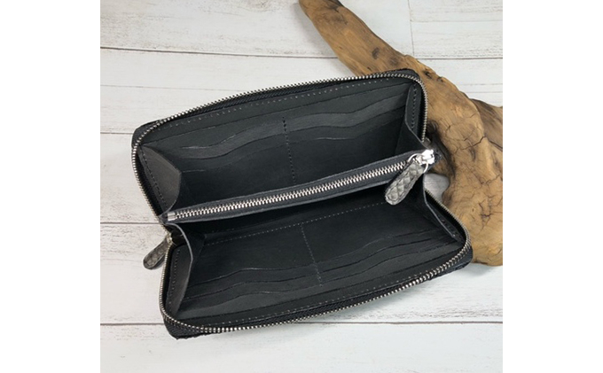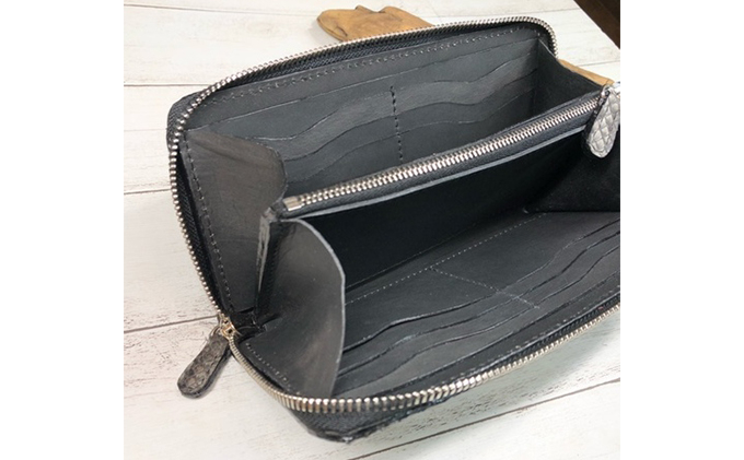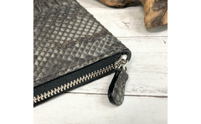財布 墨染パイソン×墨染牛革のフルラウンドファスナー財布 長財布 ヘビ