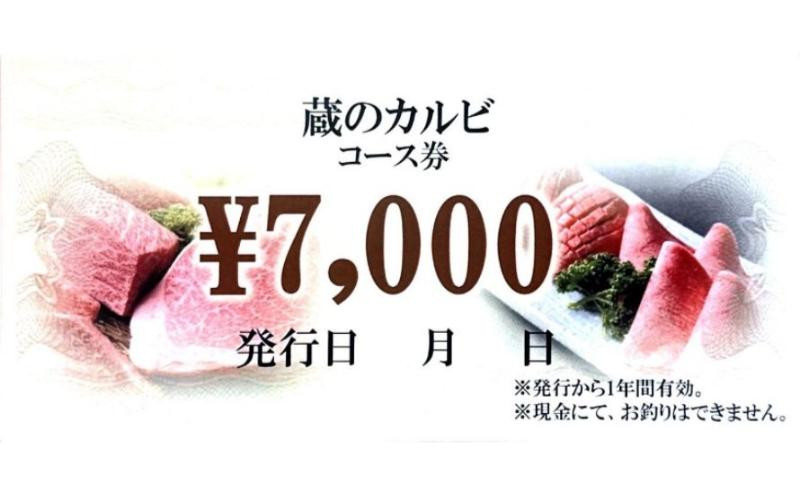 蔵のカルビ お食事コース券 7000円分 焼肉 コース料理 ディナー 寒川町