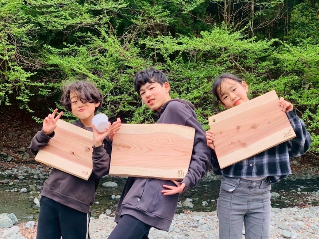林業家の一面をもつ運営者・イシタカが自ら切り出した山北町産の木を使って、木工体験!自分だけのオリジナル刻印付きまな板を作ろう!