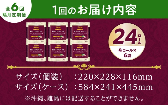こだわりの一品 快適トイレ 極上のトイレットティシュー 【全6回定期便(2ヶ月に1回届く)】R02 極上のおもてなしトイレットロール(ダブル) 24ロール(4ロール×6パック) トイレットペーパー【日本製紙クレシア株式会社】開成町 トイレットペーパー トイレットロール ダブル [BDAM036]