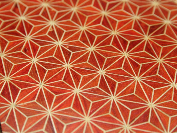 箱根寄木細工は、この恵まれた自然条件を背景に様々な樹木の自然の色を生かして精緻な幾何学模様を作成し、小箱等の製品に利用するもので、我が国では他に例を見ない独特の木工芸品です。