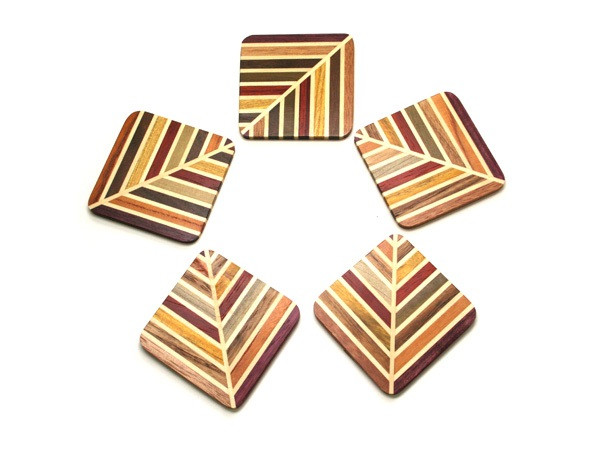 寄木ムク コースター 木の葉 5枚セット | 工芸品 装飾品 民…
