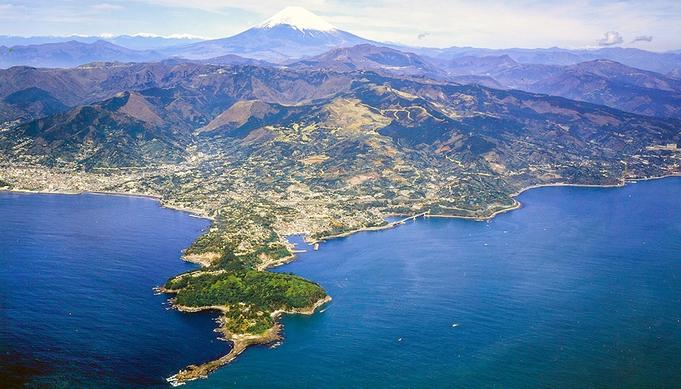 相模湾の西端にちょこんと突き出た真鶴半島。わずか7.04平方キロメートルの小さなこの町には、豊富な海の幸、実る果実に良質な石材といった自然の恵みがギュッと詰まっています。半島の先端には魚を寄せる森として町民が大切にしてきた「御林」と呼ばれる魚付き保安林など、豊かな自然に恵まれ、昔ながらの生活や風景が今もなお残っています。