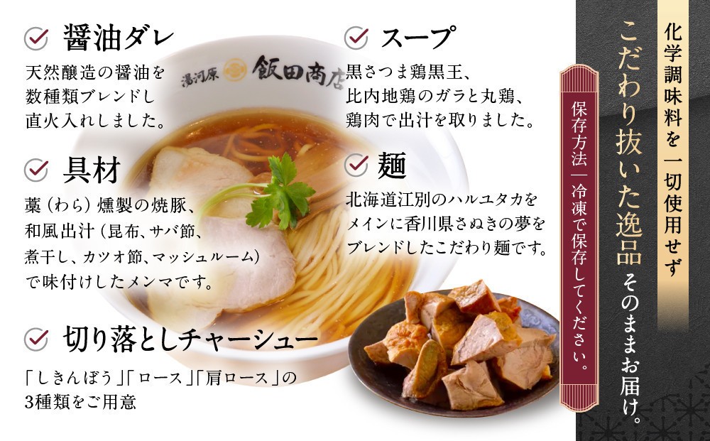 名店の味を自宅で!湯河原の本格ラーメンセット 【発送時期をお選びください】飯田商店の鶏出汁醤油らぁ麺(具材付き)2食+切り落としチャーシュー2袋セット | 湯河原町 名店 鶏出汁醤油 具材付き 叉焼 ラーメンファン必見