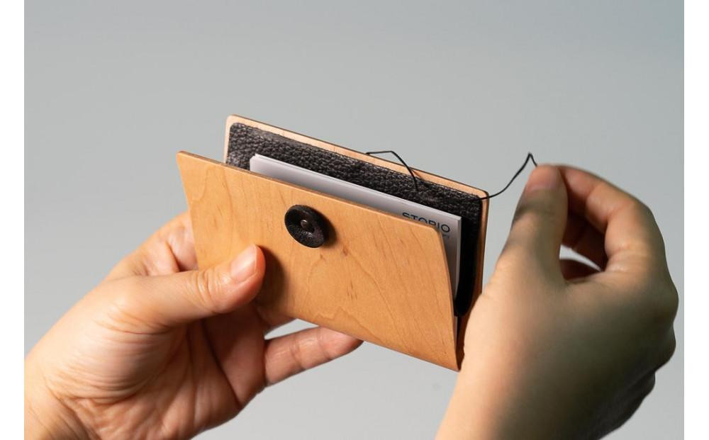 独自の加工技術で実現した、見たことのない曲げ木の名刺入れは相手の視線を引きつけることでしょう