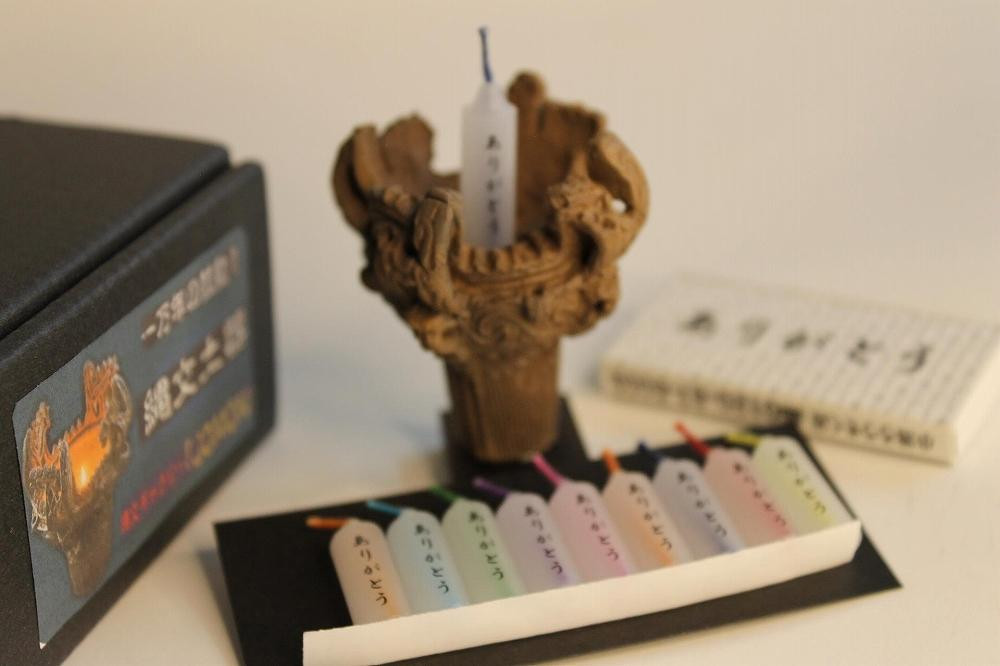 台座には磁石面を採用して鉄面テーブルに安定感が増しなおかつ接地面に傷つけない工夫も、約2cmの風水にも活用できる八色のありがとうの言霊、「ありがとうろうそく10本」も付属。(燃焼時間八分)。