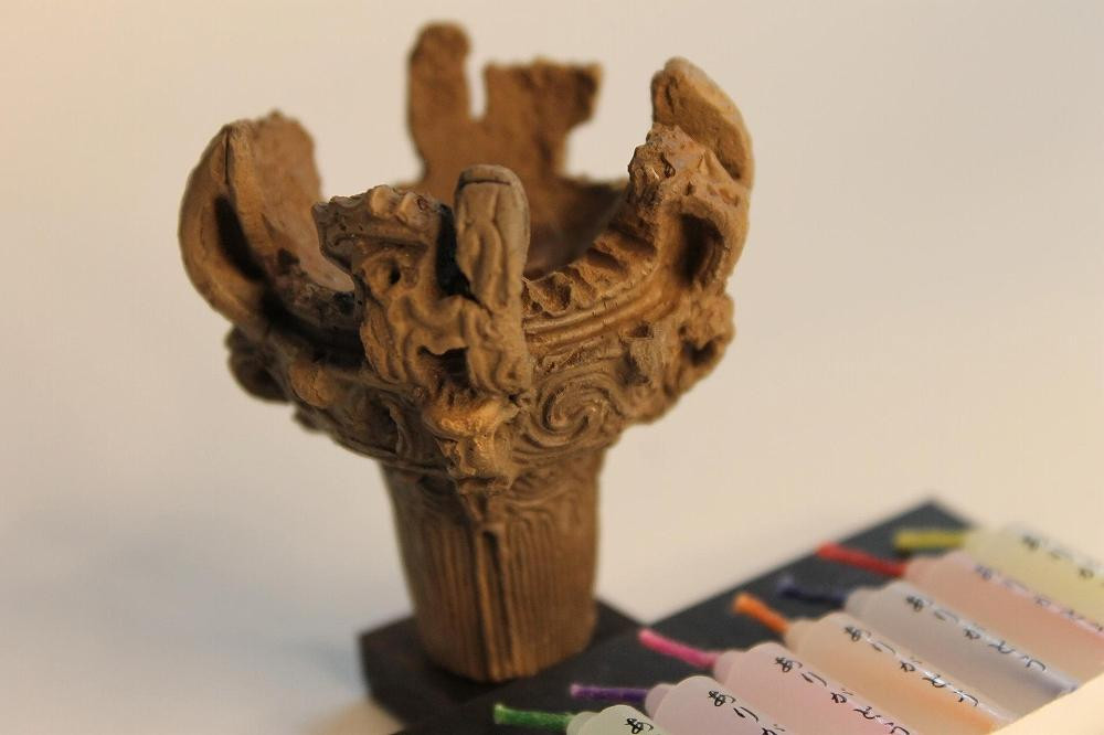さらに縄文土器内部には穴を開けて専用の銅線を立てることで「ろうそく立」とし、その銅線を取り外すと「香立て」としても使用できる多目的なミニチュア・火焔型縄文土器となりました。