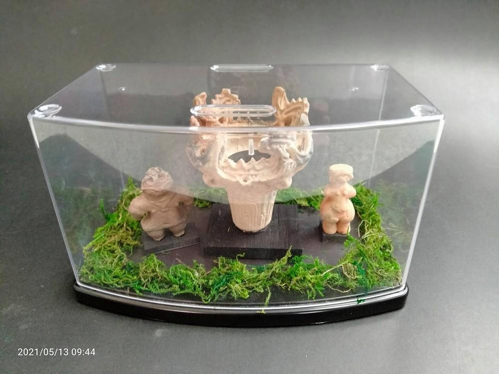 ジオラマ風の専用ケース付属。すべて職人の手作りの陶器製の作品。