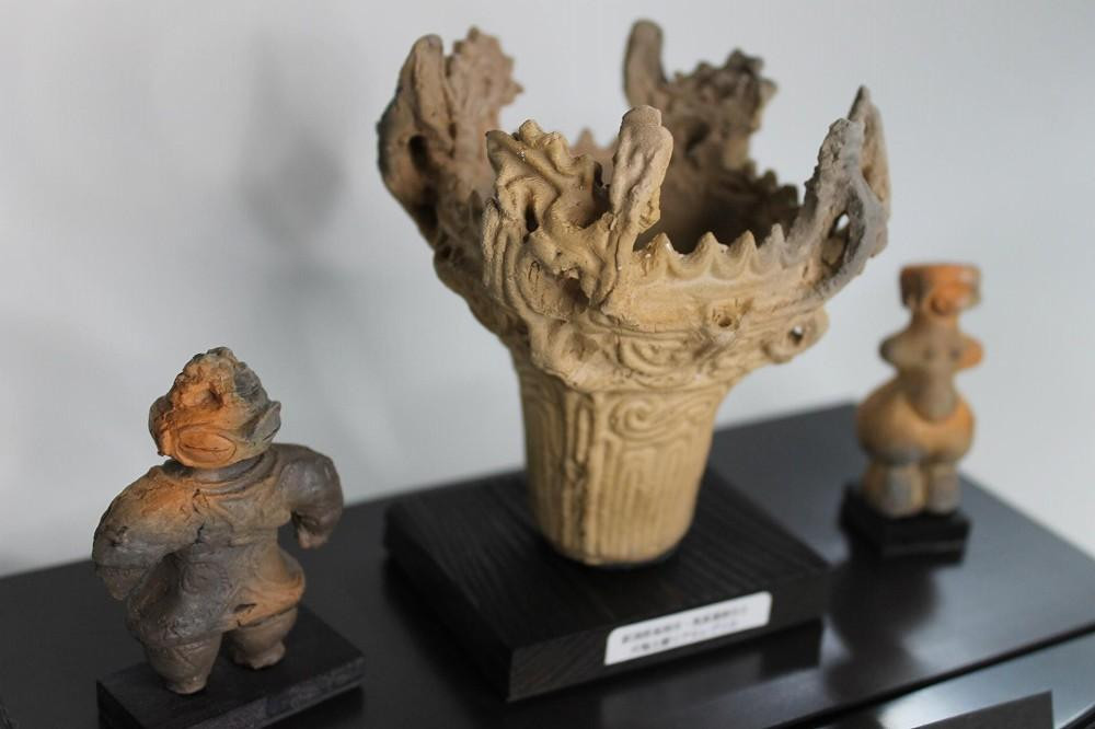 火焔型土器10cm・遮光器土偶・縄文のビーナスの人気の3点セット。(陶器製)