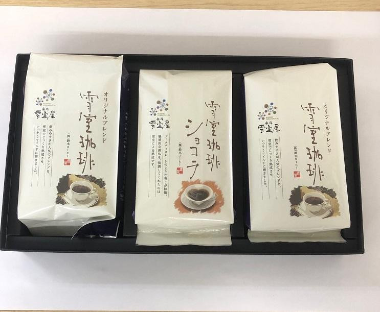 ※1箱の内容/・雪室珈琲オリジナルブレンド(180g豆×2)・雪室珈琲ショコラ(180g豆×1)