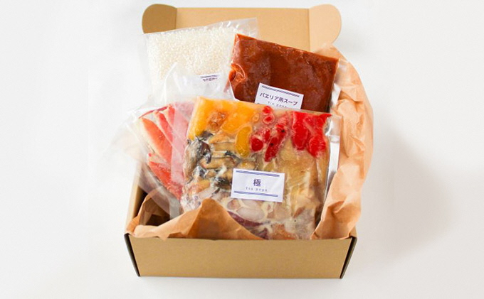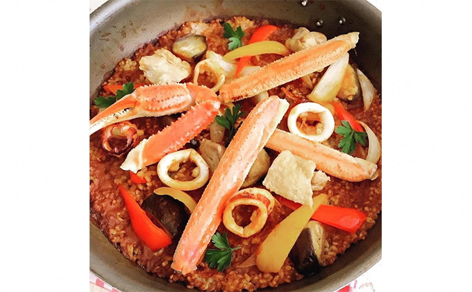 新潟県産のこだわり抜き厳選した食材を使用した、フライパン1つでお店の味のパエリアが作れる簡単キット。エビやカニは活きたまま佐渡から直送され店舗で加工。鶏だし、野菜うまみを活かし添加物、保存料など不使用。本ズワイガニ入り