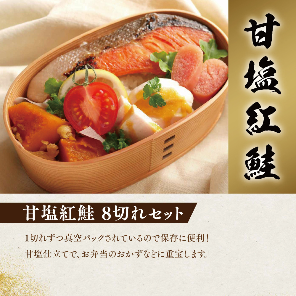 甘塩紅鮭8切セット 鮭 紅鮭 さけ サケ しゃけ シャケ サーモン 塩鮭 切り身 魚 海産物 魚介 魚介類 惣菜 おかず ごはんのお供 朝ごはん お弁当 個包装 ギフト 贈答 真空パック 冷凍 新潟
