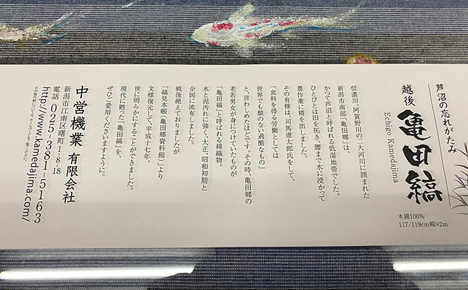 信濃川、阿賀野川の二大河川に囲まれた新潟市南部「亀田郷」の綿織物です。低湿地で腰まで水に浸かって農作業で着用した水・泥に強く柔らかい肌触りでソールが特殊素材で滑らないので介護施設等で利用されています。尚且つ左右ありのスリッパなのでフィット感があります。