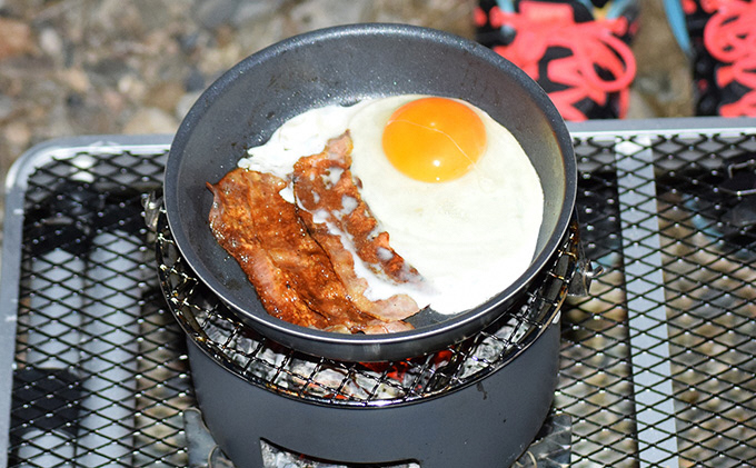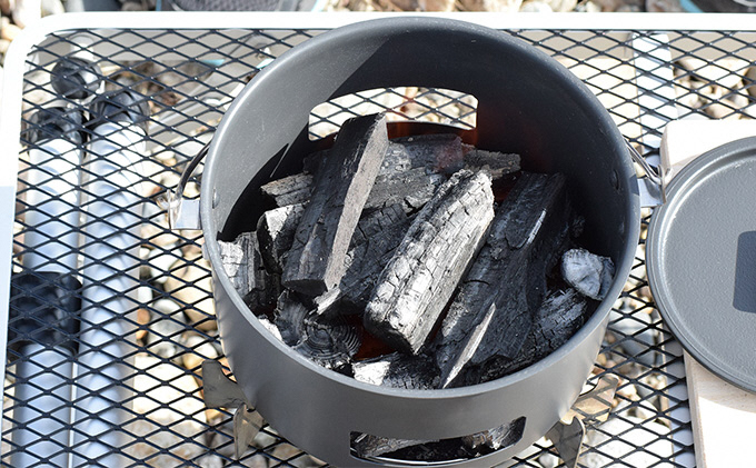 ソロキャンプにピッタリの調理器具です。炭火で釜でご飯を炊き、フライパンで肉や玉子を焼いたり、焼き網で肉・野菜を焼くこと出来ます。フライパンを持ち上げるリフターはトングとしても使用できます。収納袋付きですのでコンパクトにして持ち運び出来ます。かまど置きを使うことでテーブルなどを焦がすことがありません。