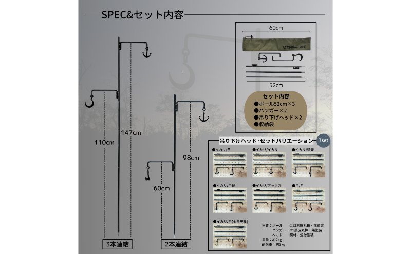 全部で7種類のヘッドバリエーションがあります。こちらの商品はイカリと月のヘッドになります。