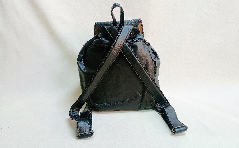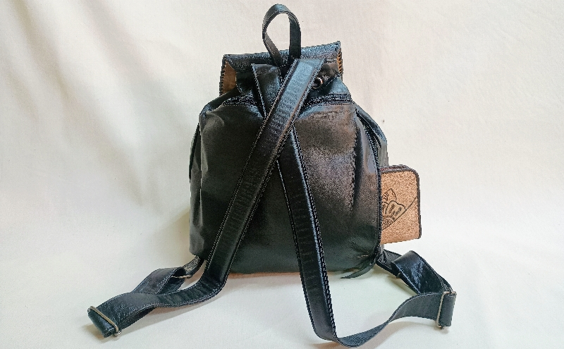 とっても軽い! 衣料革と手染め革の手作りリュック(黒) 鞄 カバン バッグ