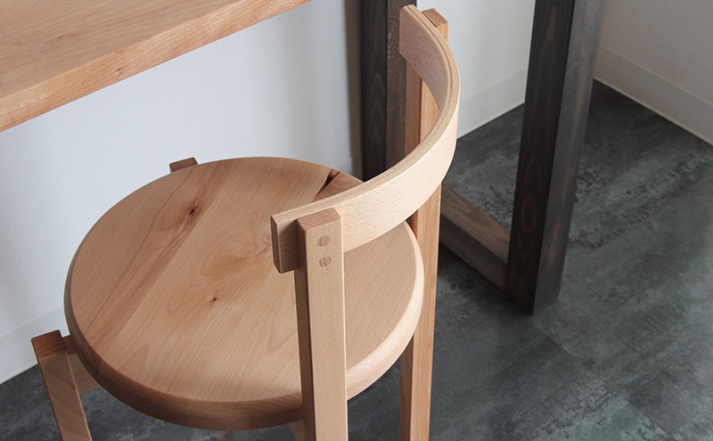 背もたれ部分は曲木でお作りし、ゆったりとしたカーブが腰部を支えます。