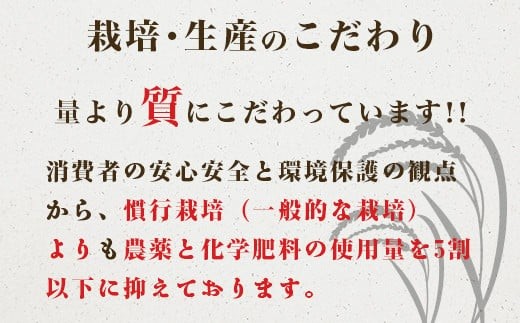 消費者の安心安全と環境保護の観点から、慣行栽培(一般的な栽培)よりも農薬と化学肥料の使用量を5割以下に抑えております。