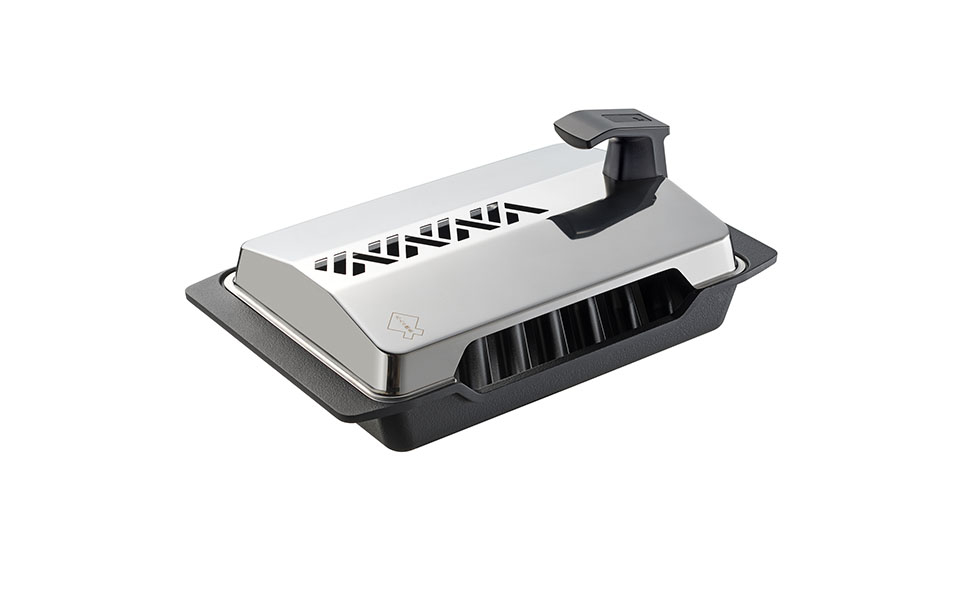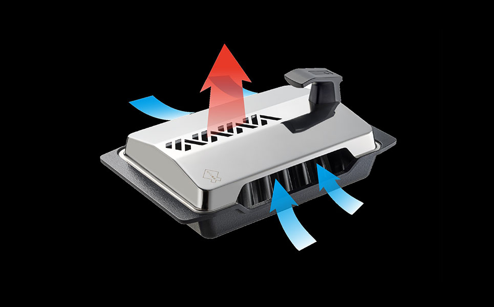 遠赤効果で皮がパリッと焼き上がる「炭プレート」の遠赤効果と独自形状の「皮パリ蓋」との組み合わせで中はふっくらと柔らかく、表面は皮パリに焼き上がります。