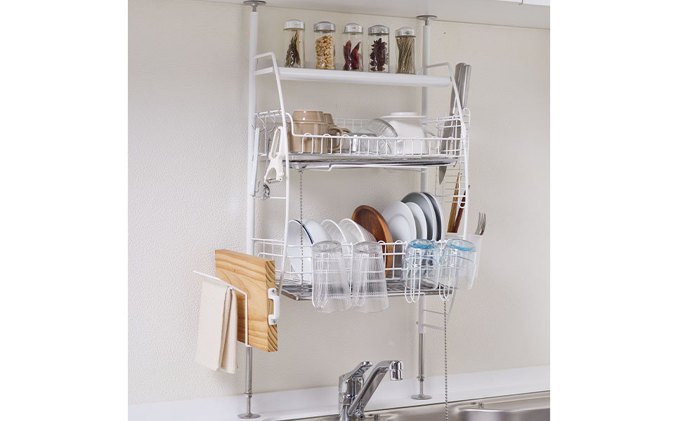 【関連キーワード】 流れるつっぱり水切りラック ホワイト つっぱり式で省スペース 燕三条製 bwsSELECTION 水切りラック 3段 キッチンラック キッチン収納 ビーワーススタイル