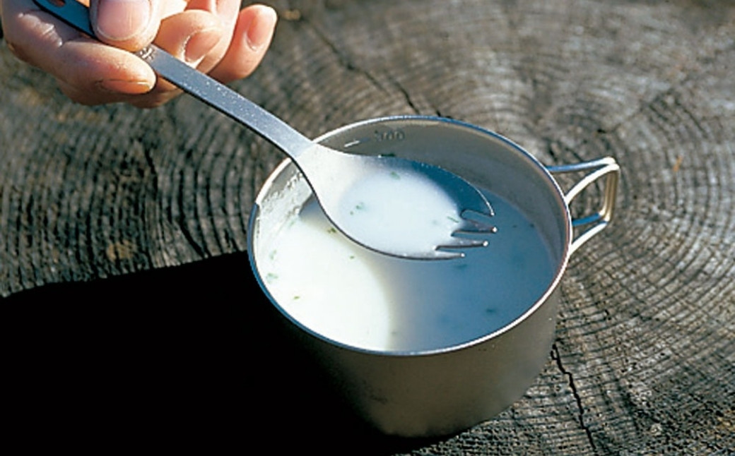 フォークとスプーンを兼用できるチタン製の超軽量カトラリー。