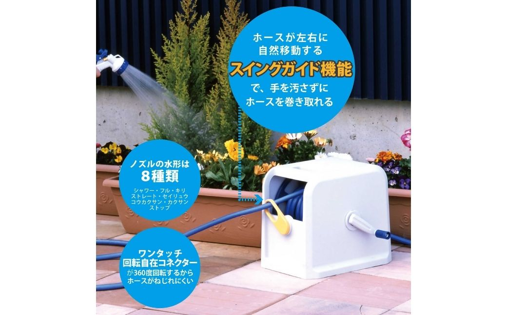 ●スイングガイド機能でホースを巻き取る時、手を汚さずに巻き取れる。