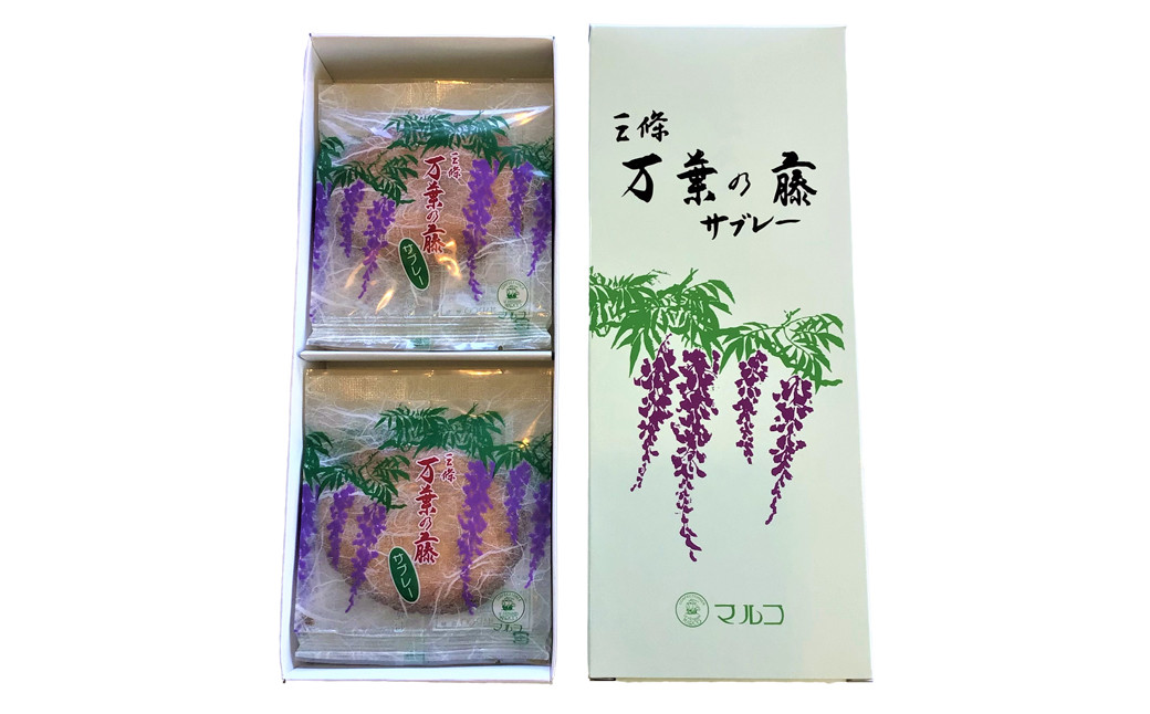 当時のシンボルである藤の花にちなんで作られた万葉の藤サブレーと、当店の人気商品であるどらやきをセットにしました。