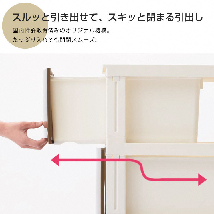 国内特許済みのスルッと引き出せて、スキッと閉まる引出し。