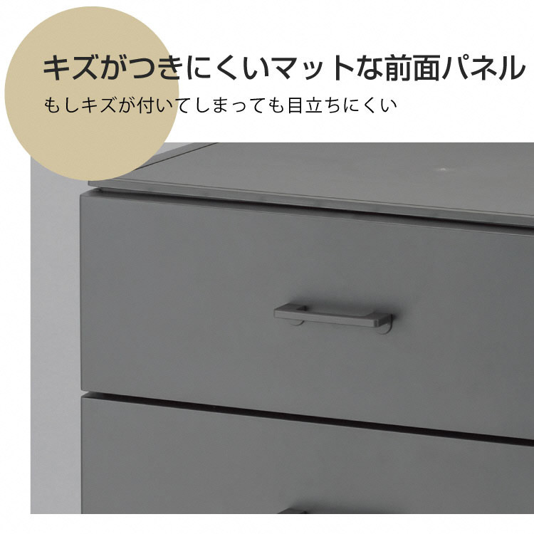 キズつきにくく、キズが目立ちにくいマットな前面パネル。天板にはアルミバーが入っており物を置いてもたわみにくい。