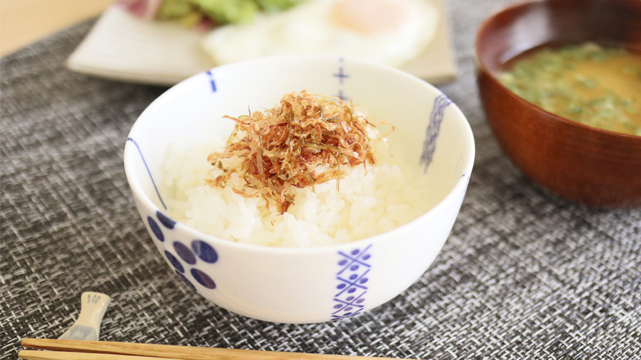 糸状にふんわりと削った糸かつおに7種類のだしを使って甘じょっぱく味つけしたふりかけです。 刻み昆布のアクセントにかつおの風味が口いっぱいに広がります。