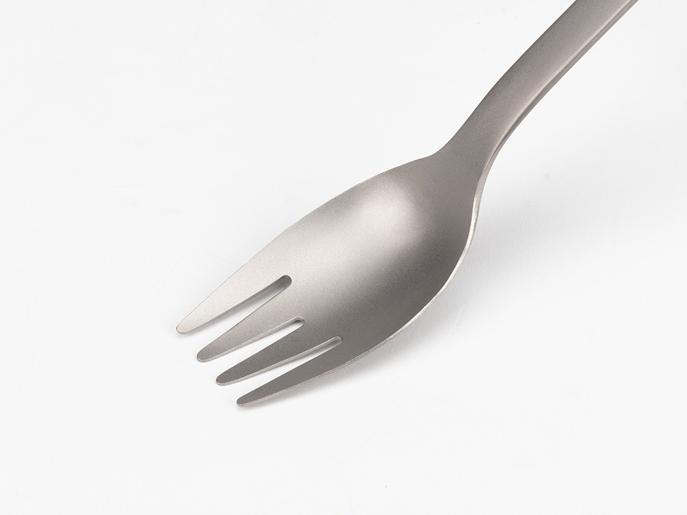 これを1本持っていれば、ご飯や麺、スープなど、どんな料理も美味しく食べられます。 持ち手にはアウトドアでご飯を炊くときに便利な飯炊きスケールが付いています。アウトドア好きに持っていてもらいたいカトラリーです。 軽くて丈夫なチタンを使ったバックパッカー向けカトラリー。