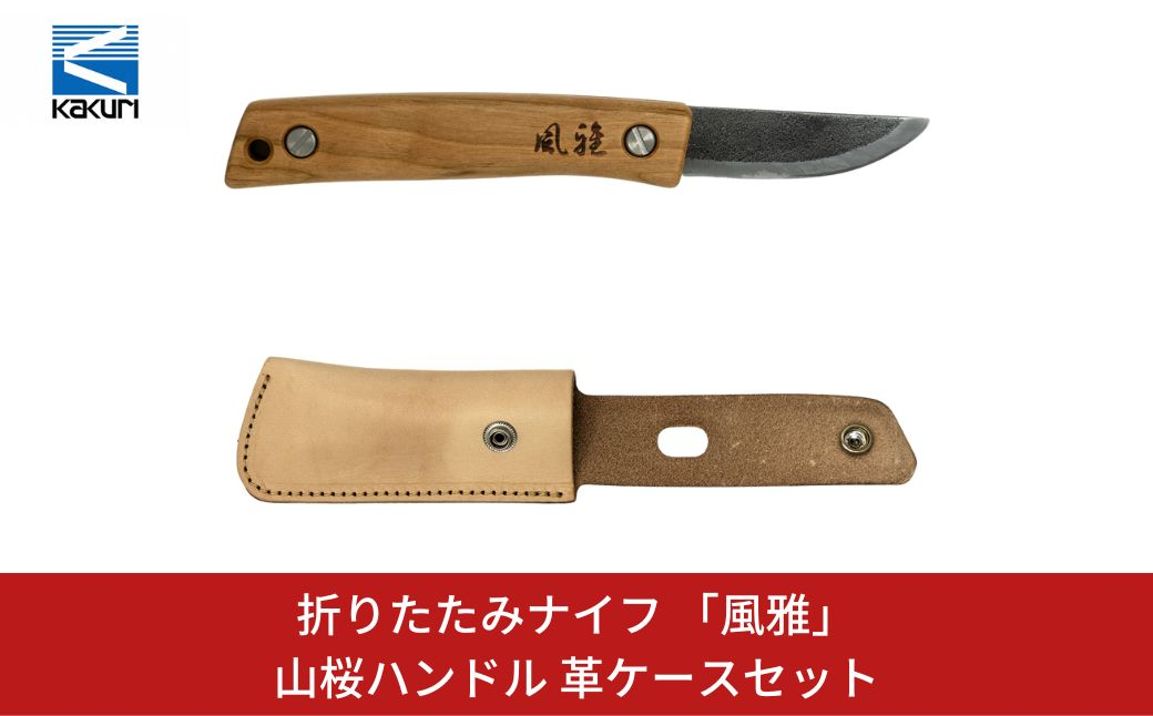 チョイスPayポイントと交換できる品 職人が手作りで仕上げたアウトドアナイフ [KAKURI] 折りたたみナイフ 「風雅」 山桜ハンドル 革ケースセット アウトドアナイフ キャンプ用品 アウトドア用品 【038S009】
