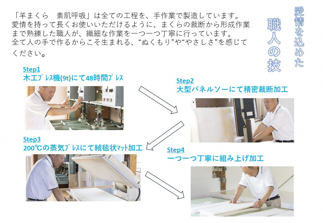 三大自然素材(ウール・シルク・コットン)を原料とした手造りまくらで幸福感動してみませんか?