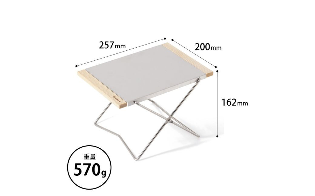 コンパクトに折り畳めて持ち運びも楽々、タフなステンレス天板で火の側で使ったりアルコールストーブなどを置いても大丈夫です!