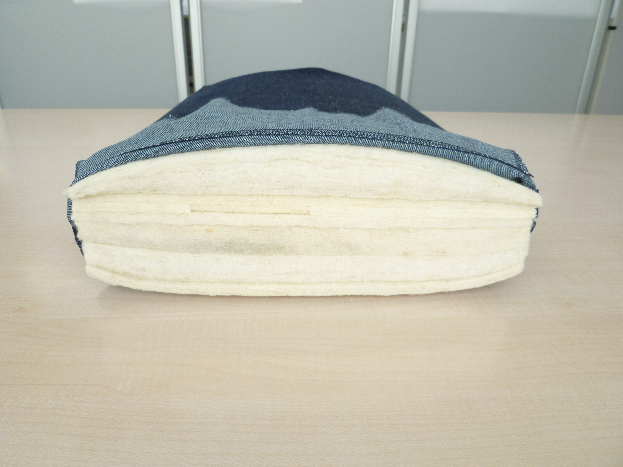 | 容量 | 【サイズ・重量】 L420×W300×H85mm・700g 【材質】 ・中芯材(羊毛断熱材ウールボード):ウール60%、トウモロコシ繊維40% ・カバー(バナナデニム):コットン70%、バナナ茎繊維30% |
