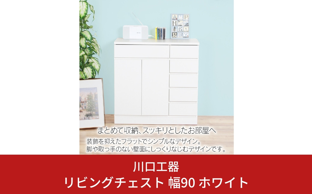 チョイスPayポイントと交換できる品 お部屋によくなじむ、シンプルなデザインのキャビネット リビングチェスト 幅90 ホワイト 木製 収納 棚 リビング収納 インテリア 組立不要 配線よけ [川口工器] 【167S001】