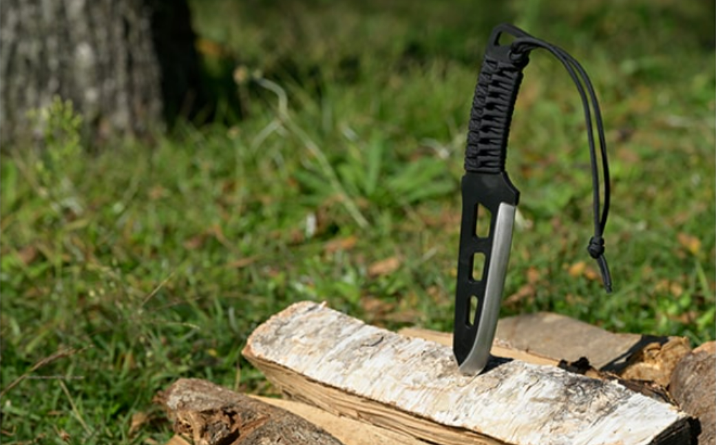 (必ずナイフの背でバトニングしてください。刃先を叩くと危険です)