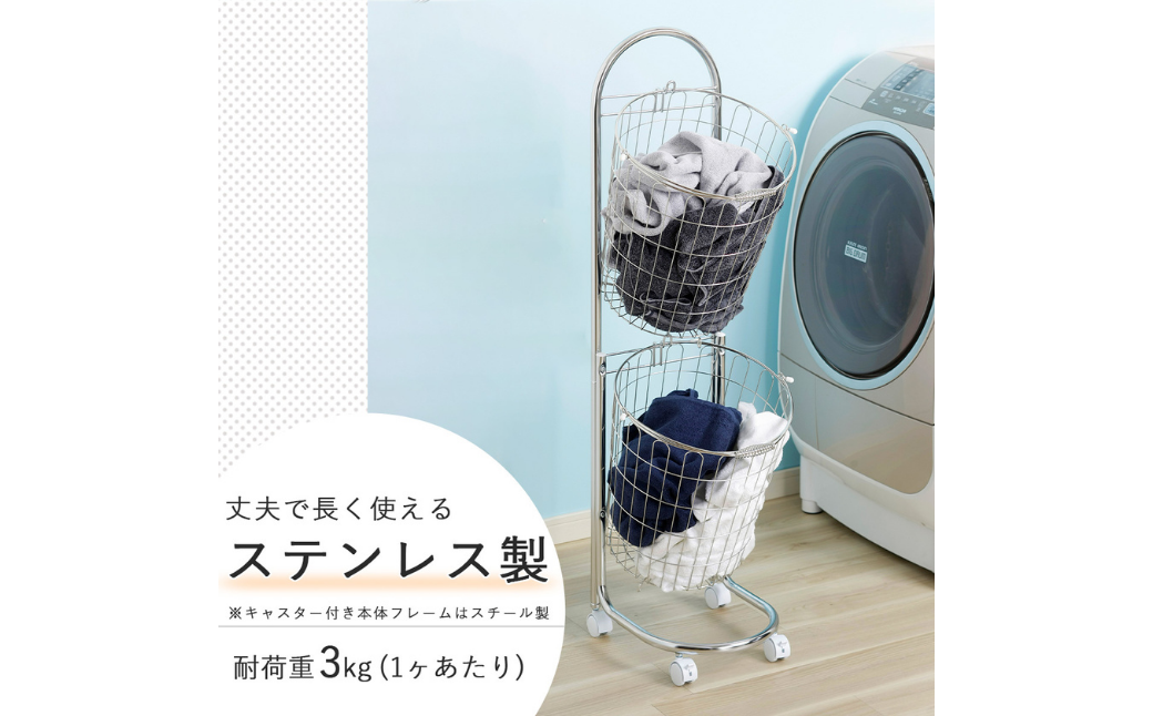 チョイスPayポイントと交換できる品 脱衣所の狭いスペースを有効利用できるステンレス製のバスケット ランドリーバスケット2段 30cm×40cm×115cm キャスター付 バスケット取り外し可 スリム 大容量 一人暮らし 新生活 組立式 【030S063】