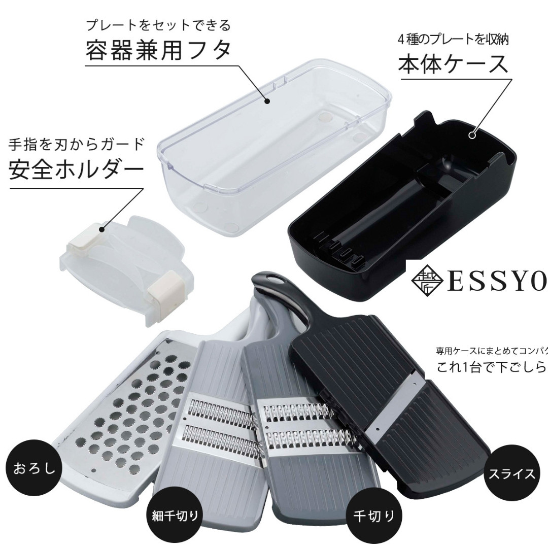 チョイスPayポイントと交換できる品 スライサー、千切り、細千切り、おろし、4種のプレートがついた野菜調理器セット [越匠] 野菜調理器セット 下準備 コンパクト スライサー おろし 千切り 細切り 時短調理 調理器具 新生活 一人暮らし キッチン用品 燕三条製 【015S117】