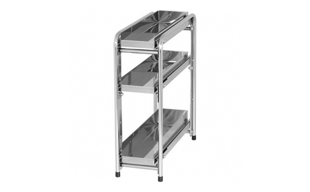 チョイスPayポイントと交換できる品 シンクの下の収納空間をスッキリ使い。棚はサビや汚れに強く、清潔感のあるステンレス シンク下収納 スライドラック 棚3段 幅15cm キッチンラック キッチン収納 台所収納 キッチン用品 収納用品 [川口工器] 【025S049】