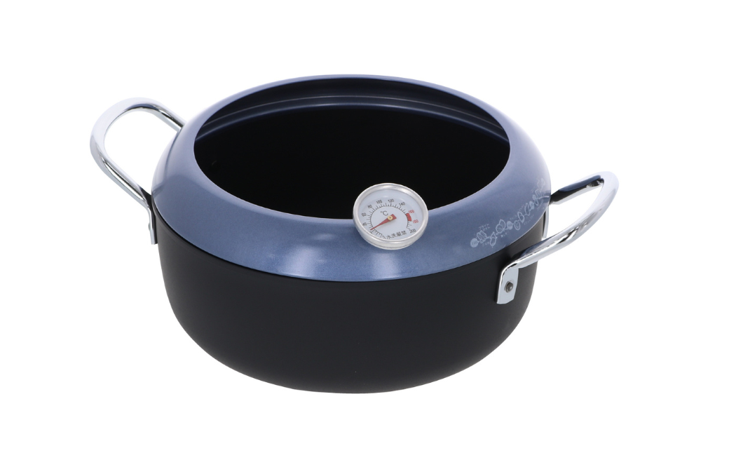 丁度良いあげごろがわかる温度計付 IH・ガス火対応 油が外にはねにくいフード付 揚げ物専用 日本製