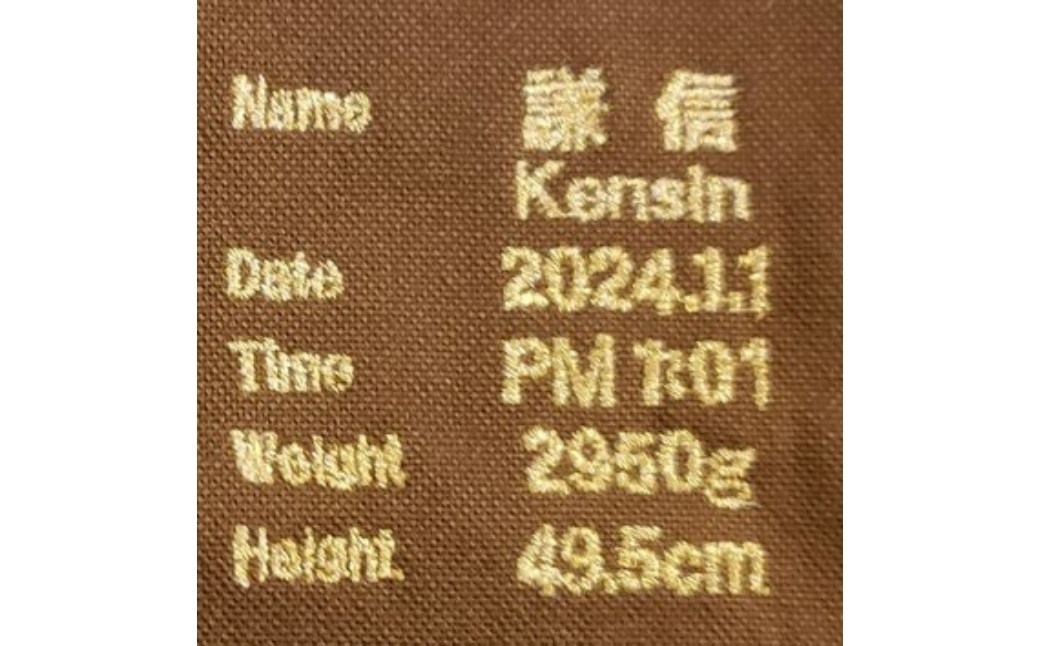 ・名入れする情報例:名前(漢字・フリガナ・ローマ字)、生年月日(西暦)、誕生時刻(AM・PM)、誕生時の身長・体重など