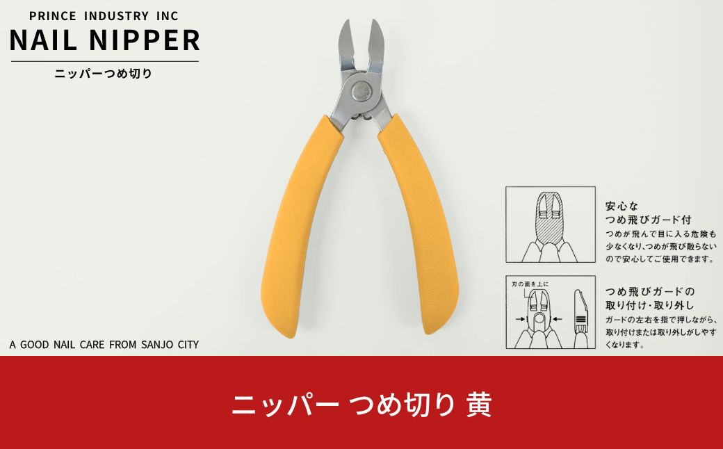 チョイスPayポイントと交換できる品 国産のステンレス製爪切り。ステンレス製で丈夫で切れ味良し ニッパー 爪切り 黄 爪飛びガード付属 つめ切り ネイルニッパー 燕三条製 プリンス工業 10000円以下 1万円以下 【010S548】