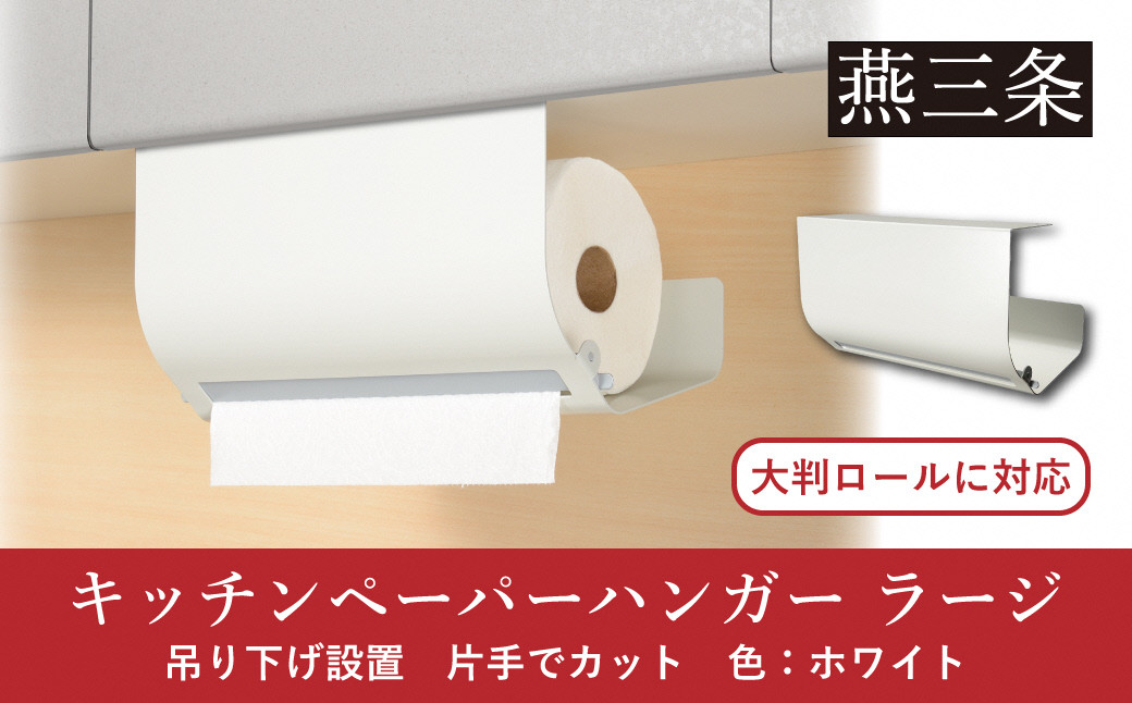 チョイスPayポイントと交換できる品 片手でスパッと取り出せるキッチンペーパーハンガー 大判対応。 片手でカット 吊り下げ キッチンペーパーハンガー ラージ ホワイト 大判ロールに対応 キッチン用品 燕三条製 [Leye] 【014S108】